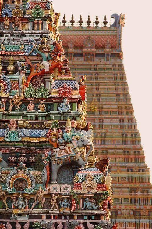 - The gopurams are adorned with thousands of vibrant, intricately carved sculptures of gods, goddesses, demons, and mythical creatures.