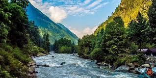 The valley is dotted with dense deodar and pine forests, apple orchards, and terraced fields.The Parvati River: